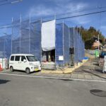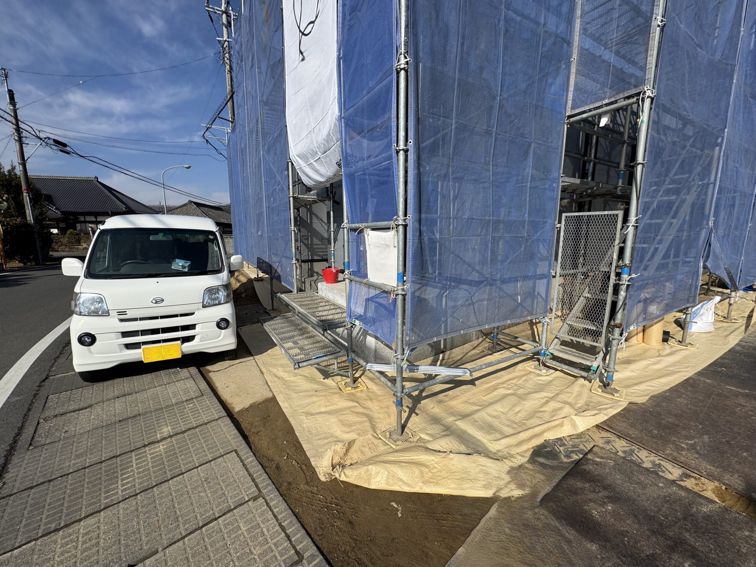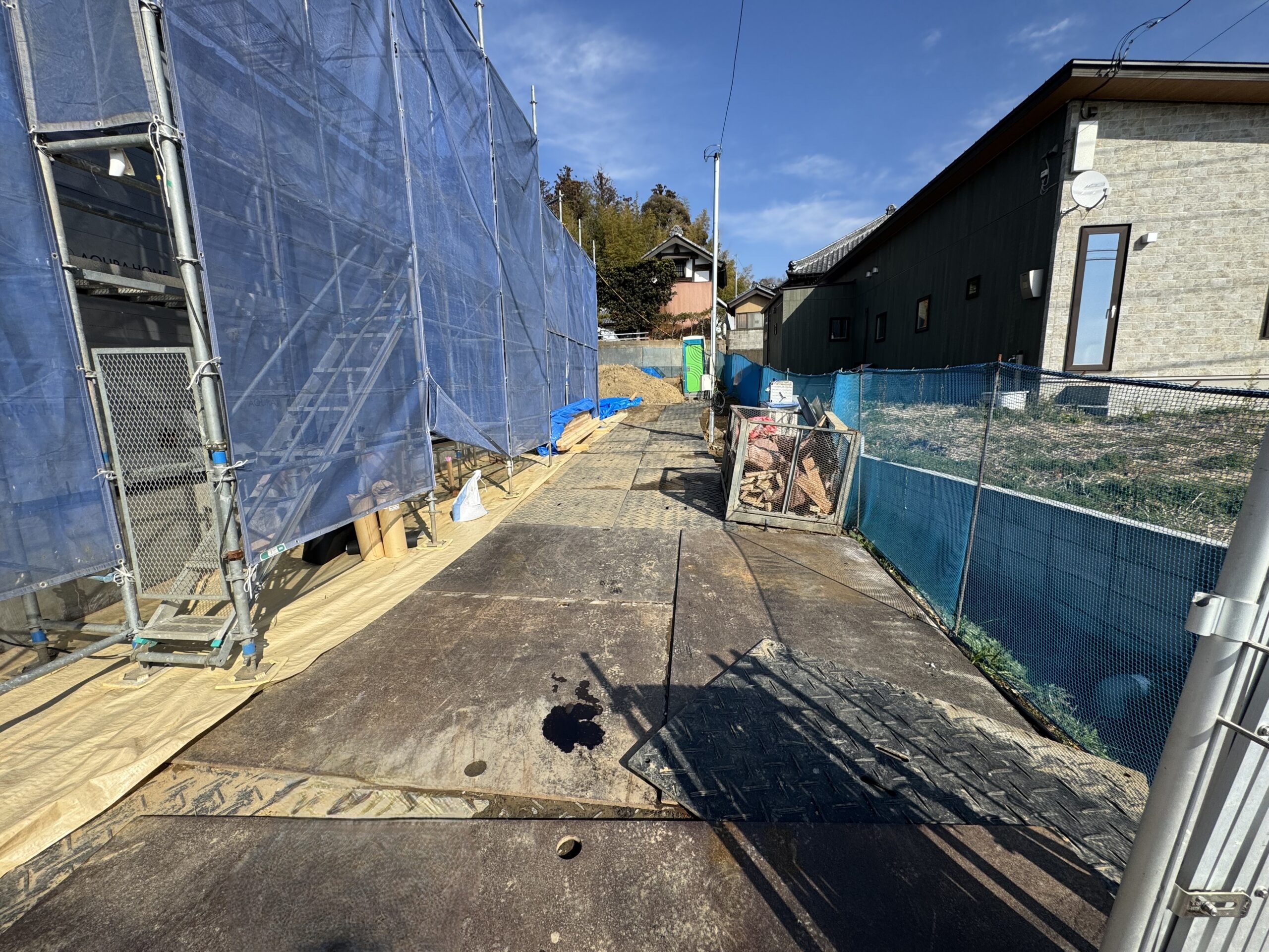 段数が多く高さがあるため、落下防止のために前面道路側はプラスGのパネル、建物側には