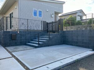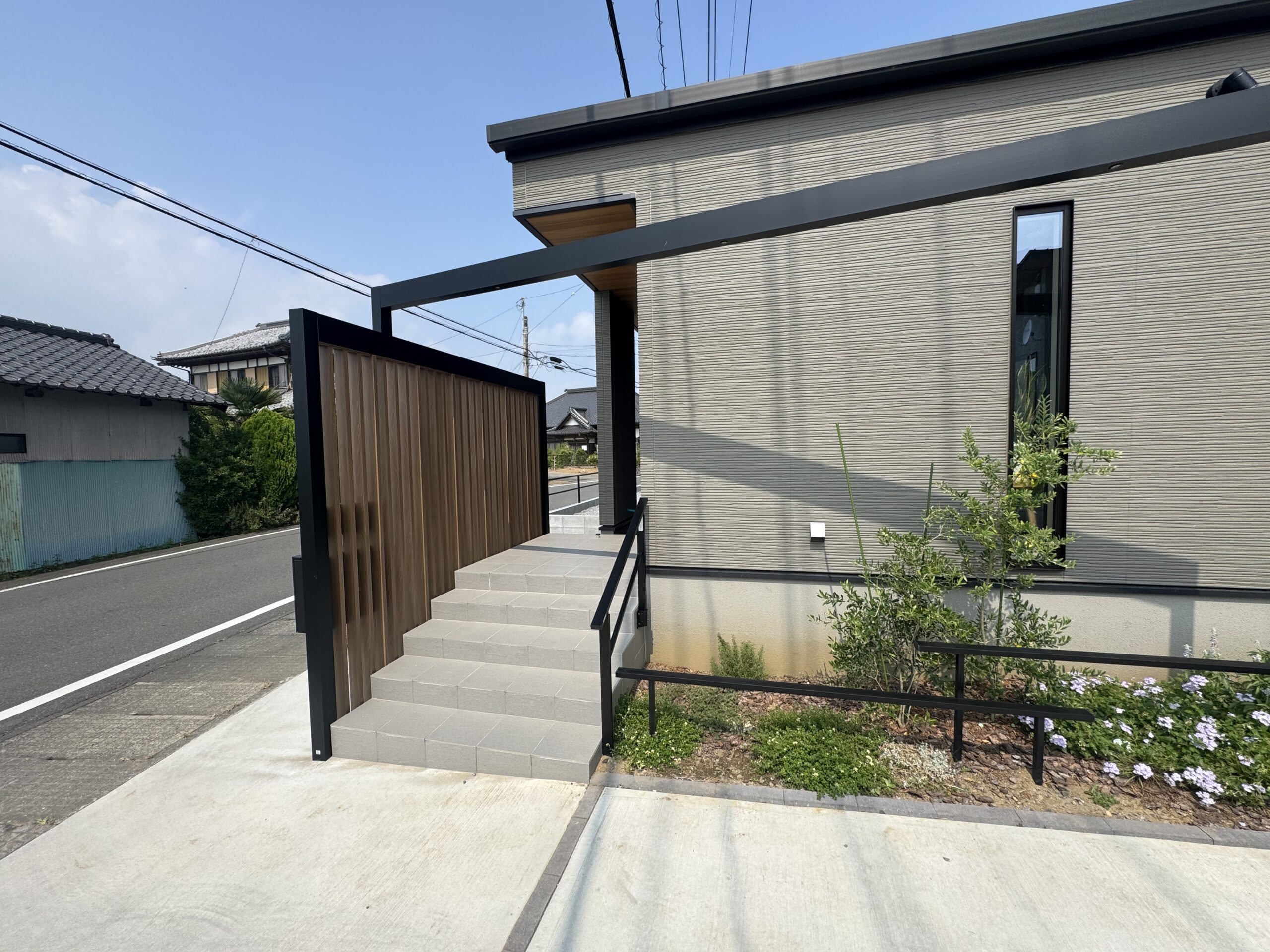 プラスGのパネルとアーチを組み合わせることで、立体的で存在感のある外構を提案・施工させていただきました。