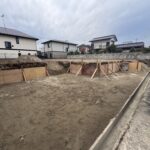 土留めが必要なお土地ということもあり、強度の強い型枠ブロックを敷設しました。